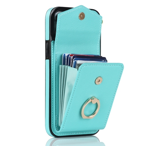 Para iPhone 11 12 13 Promax 14 Plus Ring Stand funda con ranuras para tarjetas, para iPhone 15 16 Pro Wallet Back Cover