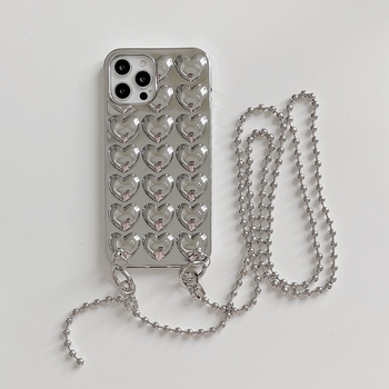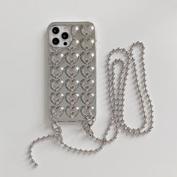 Linda funda de teléfono con correa de muñeca y cadena de corazón 3D para IPhone 12/13/14/15, funda de Tpu suave para IPhone X XS XR Max 7 8 Plus