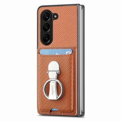 Estuche de tarjeta de crédito con diseño de fibra de carbono con soporte de anillo para Galaxy Z Fold 6