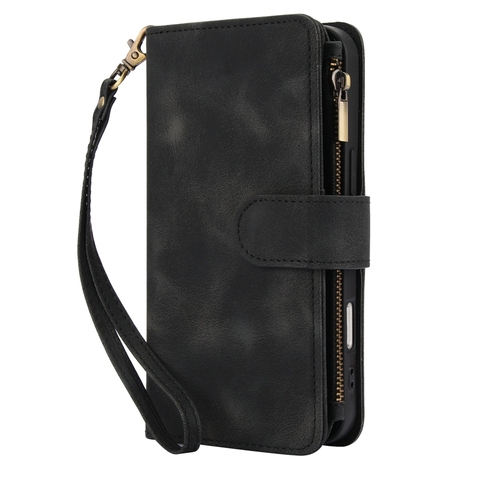 Para Samsung Galaxy S24 Ultra Zipper Flip Funda de cuero con cordón, para Galaxy S23 Ultra S22 Plus A13 A14 A15 funda tipo billetera